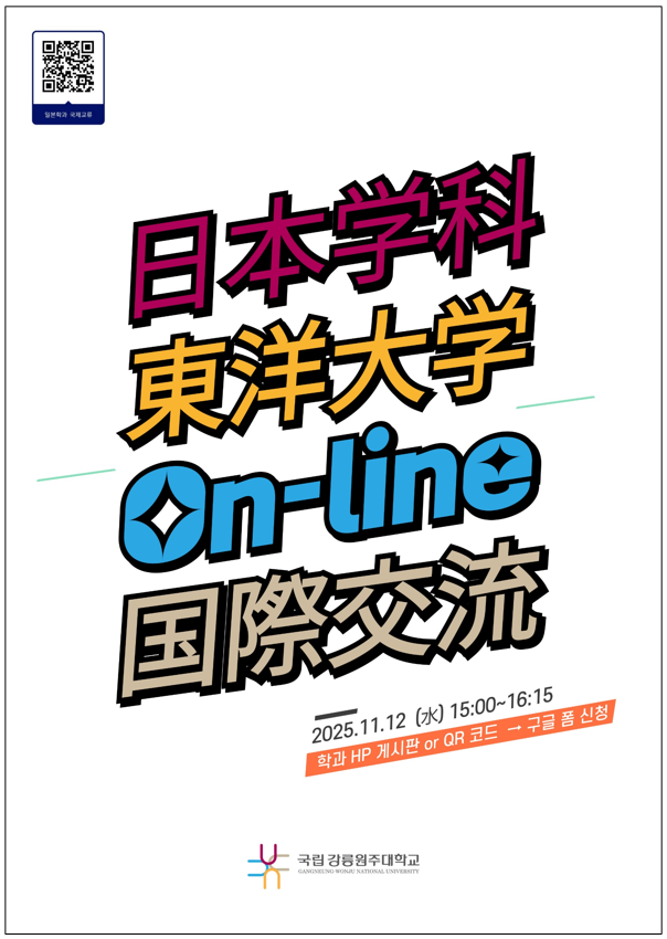 아래와 같이 일본 도요대학(東洋大学)과 두 번째 온라인 국제교류를 실시합니다.