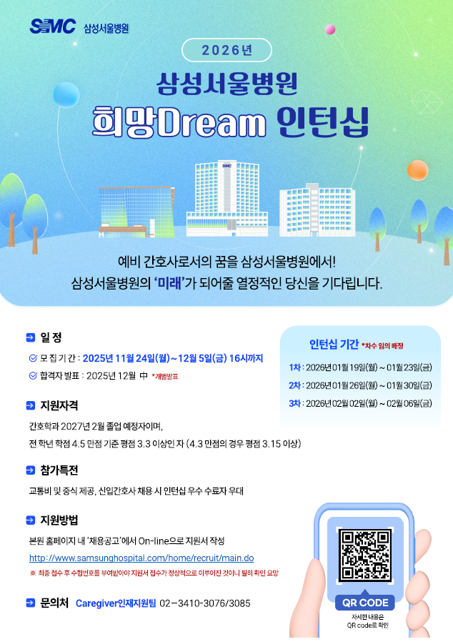 2026년 삼성서울병원 간호학생 인턴십 모집 안내