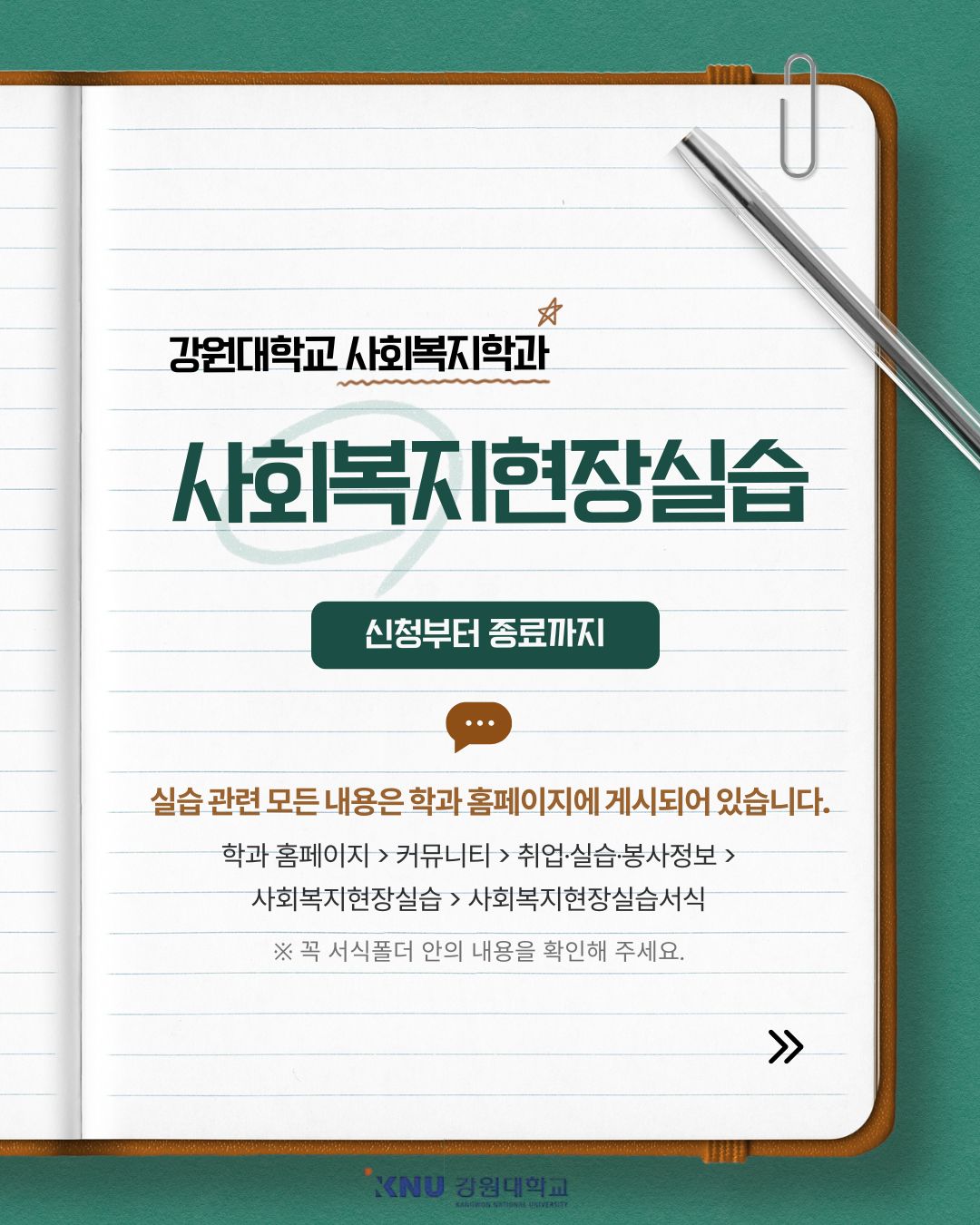 사회복지현장실습 안내 (2026 강원대 서식 첨부)